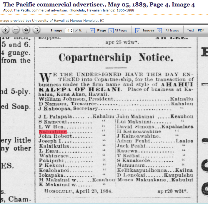 The daily herald. (Honolulu, Hawaiian Islands), 07 Feb. 1887. Chronicling America: Historic American Newspapers. Lib. of Congress. <http://chroniclingamerica.loc.gov/lccn/sn85047239/1887-02-07/ed-1/seq-2/>